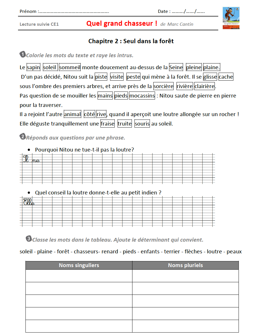 Dernièrement en cherchant une histoire d'Indien à travailler en lecture avec mes élèves, je suis tombée sur le blog du Jardin d'Alysse. Elle propose une lecture suivie sur le livre "Nitou l'Indien, Quel grand chasseur !" de Marc Cantin.